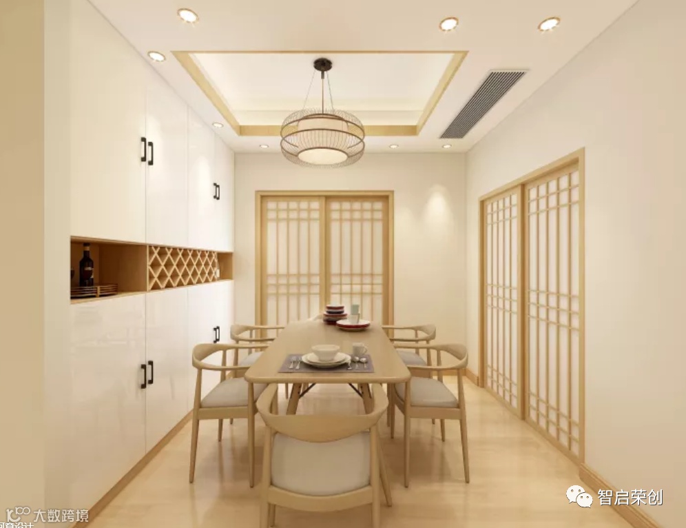 日式家居中强调的式自然色彩的沉静和造型线条的简洁。另外受佛教影响,居室布置也讲究一种禅意,强调空间中自然与人的和谐,人置身其中,体会到一种“淡淡的喜悦”。