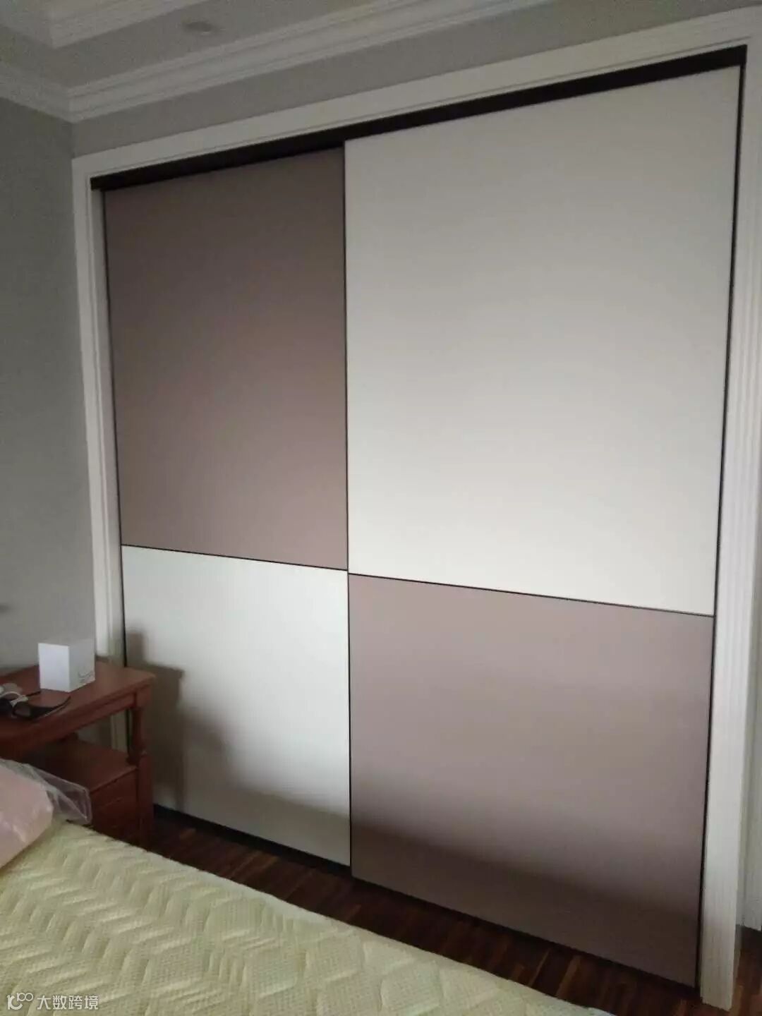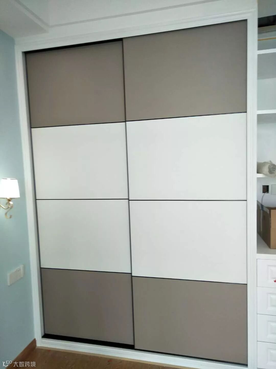 即日起,推出第三波百城千店联动促销专供产品--12厘灰白布纹实木多层混搭衣柜移门