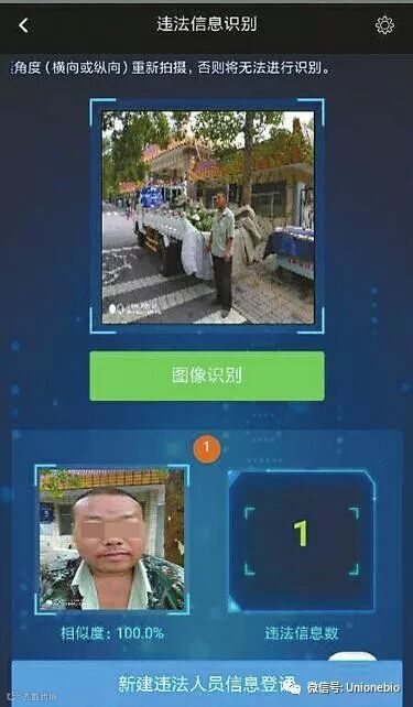 执法人员对违法当事人的人脸信息拍照上传,手机APP反馈结果