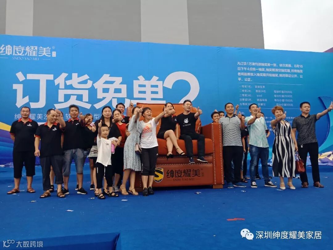 绅度耀美此次的主题是订货免单,吸引近千客户进店参与活动,以“您若敢想,我们敢做”打出的广告语,制造的中原第一巨人沙发,“大” 岂止是大,足可以震撼整个中原 ,绅度耀美此次在福蒙特展会期间推出一款超级巨无霸沙发!引起数万观众拍照合影,彰显企业的开发制造实力,并且在本届展会取得非常不错的成绩!