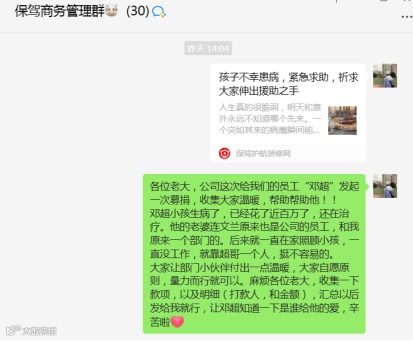 之前离职的员工,看到文章,也发来自己的一份关爱~
