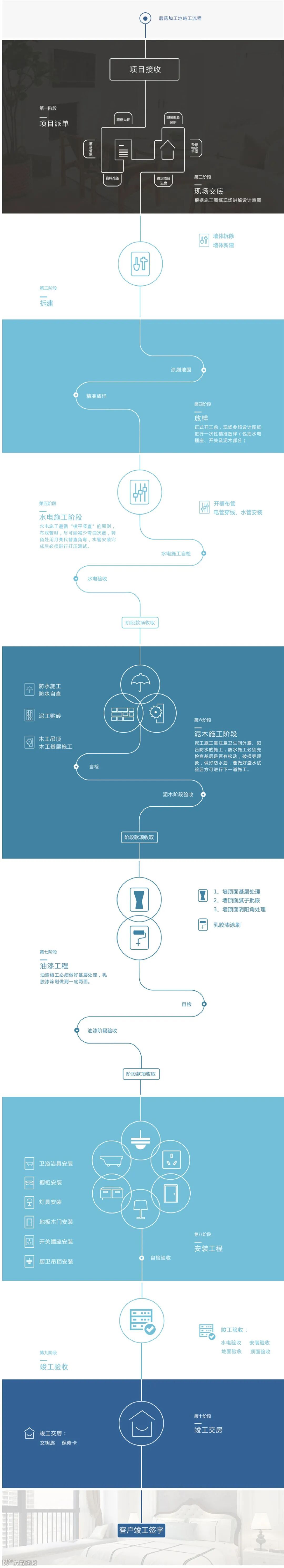 标准化施工:严格执行标准化施工流程和工艺,对“蘑菇大叔”(工程经理)和施工队进行系统培训并严格认证考核后方可上岗。