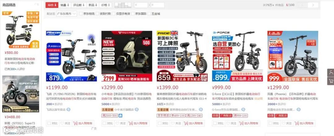 ▲电商平台上多款电动自行车在线上销售
