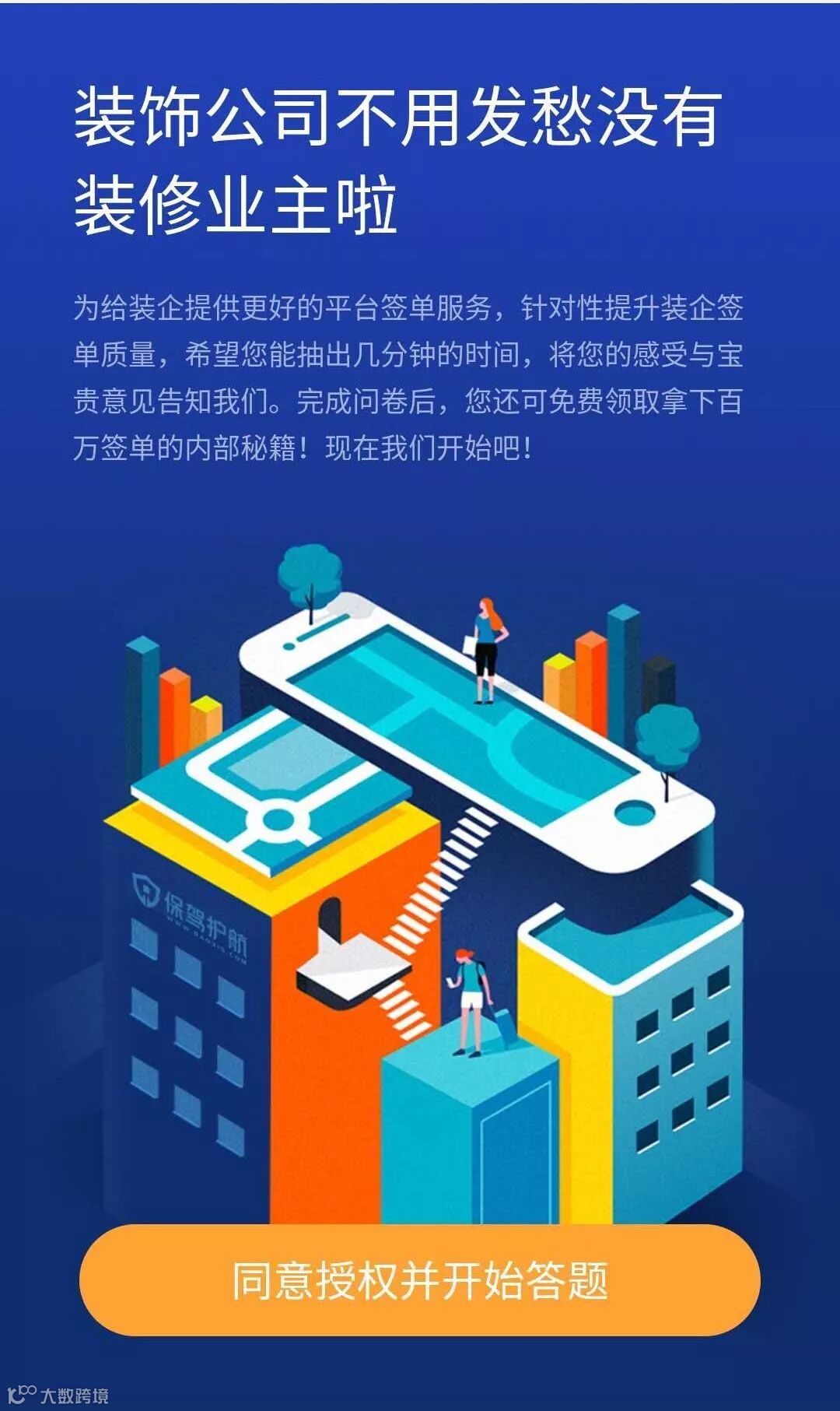 ☑ 点击下方图片进入小程序,完成装修商家问卷调研后,将提交页面截图发送至本公众号后台,即可领取签单秘籍。手动发,人多请耐心等待。