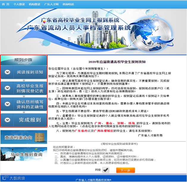 一、网页报到流程(网址:http://bd.gdrc.com/)