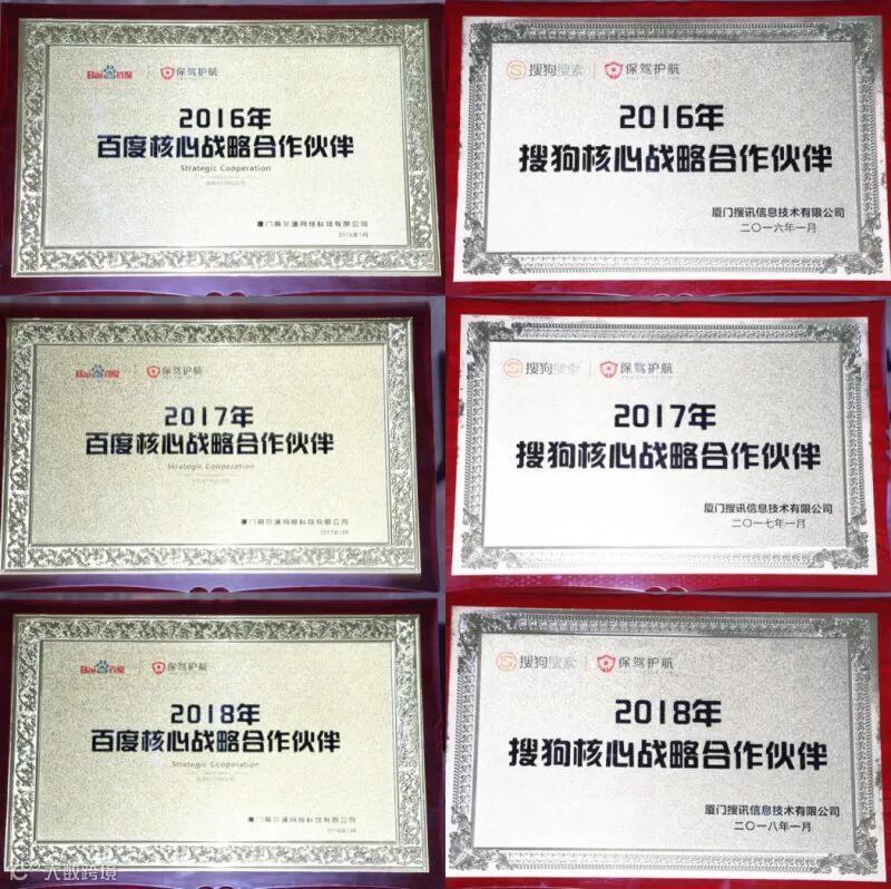 数年来,保驾护航与百度、搜狗这两大互联网公司开展了长期、全面、稳定、深度的合作,对家装互联网营销进行了充分的开发和挖掘。自2016年到2018年,保驾护航更是连续三年分别被评为“百度核心战略合作伙伴”和“搜狗核心战略合作伙伴”!