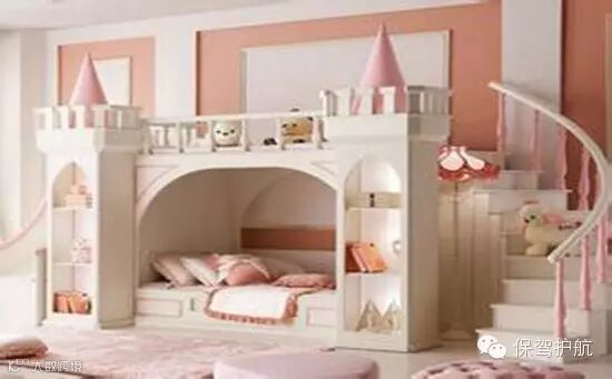 如果是两个公主,这样的儿童房装修,有浪漫公主城堡的感觉。孩子可以在其中尽情的玩耍。该床自带收纳柜,可以摆放儿童读物或是玩具。该房间上下床楼梯设计,相对来讲比较安全小孩还可以在楼梯上玩耍。
