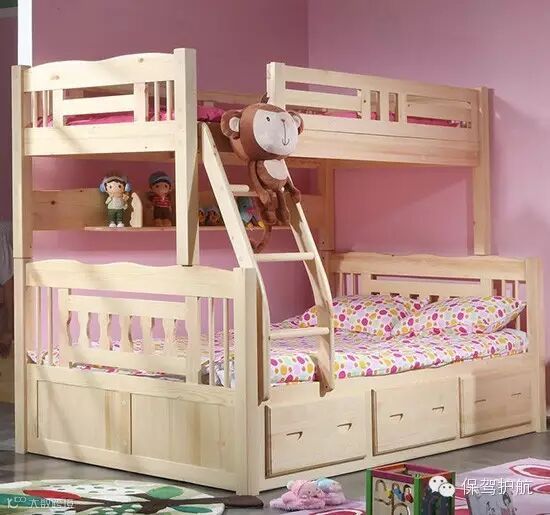 这款双人儿童房设计,看起来简约时尚,但是小编有一点点担心安全问题,毕竟孩子睡眠姿势不是那么的安分,上床的防护栏有点矮了。