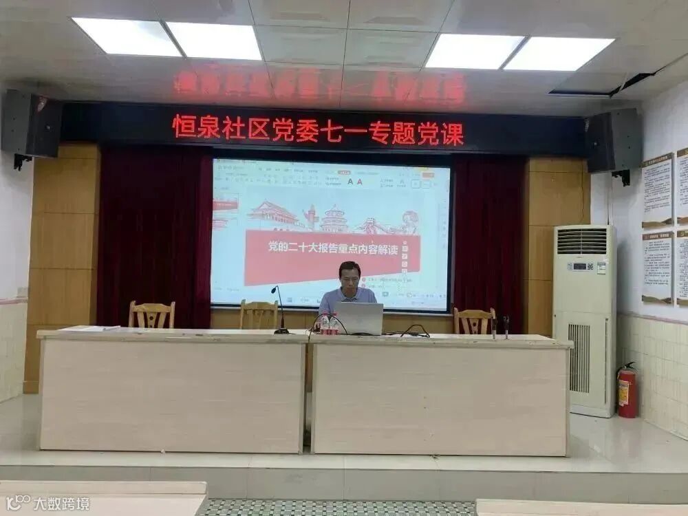 恒泉社区党委书记吴淦辉以《党的二十大报告重点内容解读》为题,结合自身学习体会,对党的二十大报告精神进行系统讲解。带领党员同志们深刻领悟党的二十大主题、过去五年的工作和新时代十年的伟大变革,整堂党课层次清晰、结构完整、解读精准,为大家深刻理解、全面把握党的二十大精神提供了精准辅导。同时,专题党课要求全体党员在全面学习、全面把握、全面落实上下功夫,持续推动党的二十大精神学习贯彻走深走心走实。