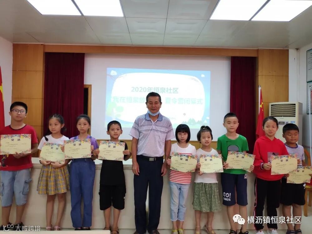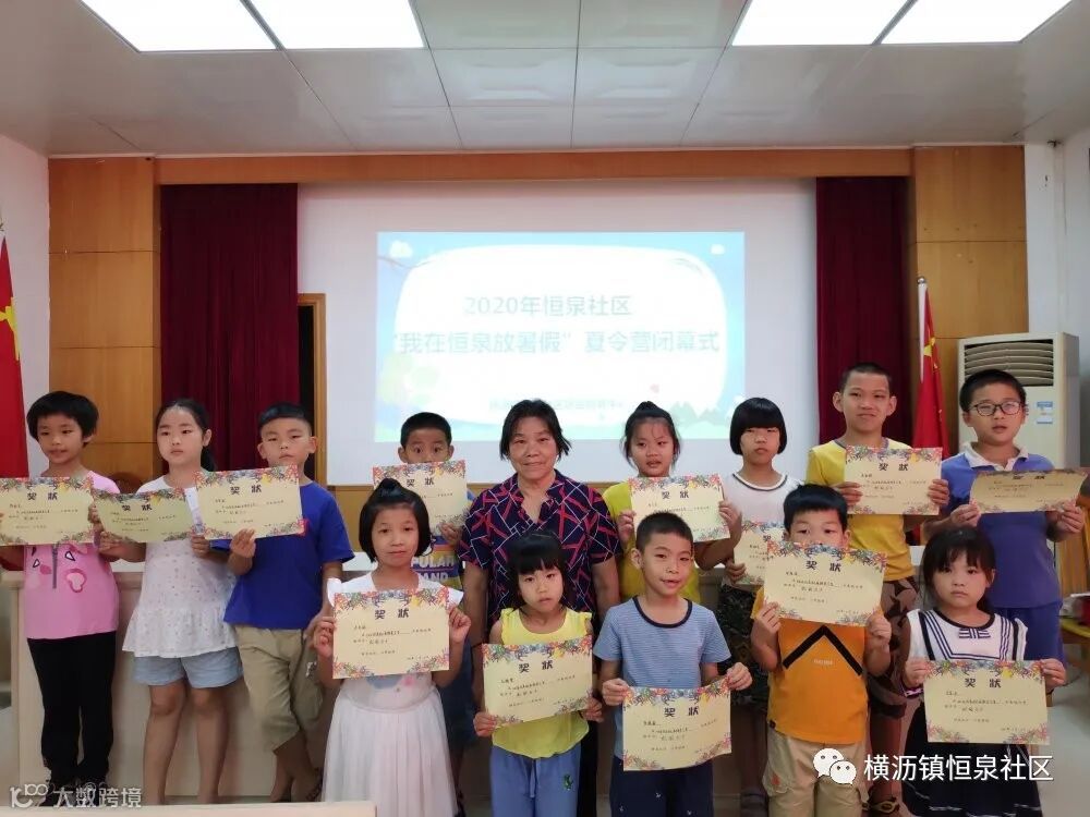 2020年恒泉社区“我在恒泉放暑假”暑期夏令营经过了8天的课程在今天迎来了闭幕仪式。乐民驻恒泉社区综合服务中心组织夏令营小学生,大学生志愿者共同参与了夏令营闭幕式。