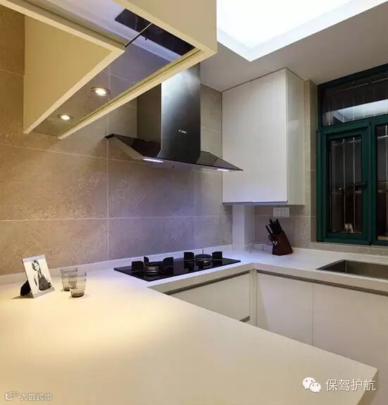 开放式厨房选择了侧吸油烟机降低油烟度,回字形的橱柜拥有足够大的储物空间和令所有主妇羡慕的超大台面。组织一场丰盛的年夜饭也有充足的发挥之地啦。