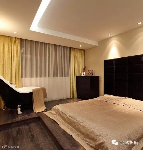 卧室的一边连着一个内阳台,如今安放了一个浴缸,变成了卧室中非常有趣的一部分。满足了女主人的需求又减轻了卫生间的压力。