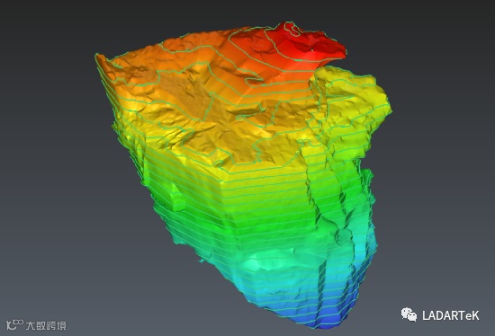 根据获取的空区点云构建实体模型后,可直接计算空区体积和生成任意间隔的断面图。