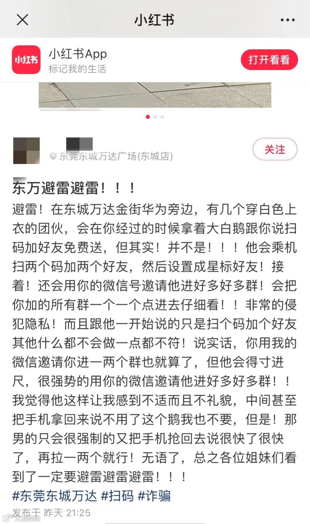 记者拒绝摊主帮忙操作,但摊主却不耐烦地表示"这样无法验证你是否是新用户,不能送礼品。"记者离开摊位后再扫描发现,并不能正常打开,微信同时也发出安全提示,由此可见摊主提供的二维码并不安全。