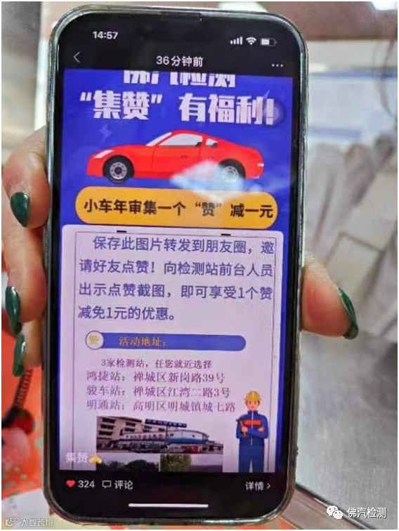 佛汽检测属下各站自推出集赞活动以来,广大车主朋友积极参与活动,并获得车主朋友们的点赞与青睐。活动正在如火如荼进行中,有的车主朋友的朋友圈实在太强大,获得了小车年审“全免费”,可喜可贺!