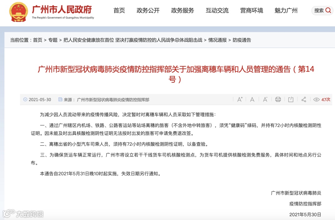 广州市疫情防控指挥部发布通告