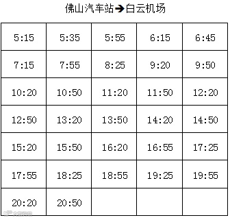 为 前往白云机场的乘客请注意,从6月1日起,禅城机场大巴线路所有班次将增加佛山汽车站经停点。班车从澜石候机楼开出后,均途经进入佛山汽车站配客。具体班次时刻如下:
