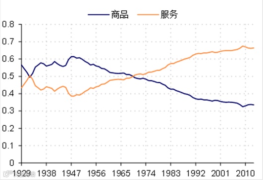 图表15 美国服务消费在40年代末崛起 |