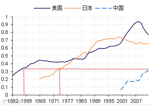 国际经验显示,人均GDP超过1万国际元正是“富有并自认为富有”的关键节点,居民消费将显著提升。走向“富日子富过”的阶段的典型特征是,人均收入达到相对富裕水平,之前阶段对基础设施、资本品和研究与开发的投入通过生产效率的提升带来回报;与此同时,社会心理会发生深刻变化,从更强调努力工作和大量储蓄以免受经济不景气之苦,逐步过渡到开始享受人生的成果,其核心的改变在于新一代人成为社会的中坚力量。因此便会有工作时间的下降、劳动参与率的下降,同时休闲和消费的大幅增加。韩国在90年代初人均GDP小于1万国际元之前,经济依赖高储蓄快速增长,居民消费占比持续回落,由60年代初的85%左右下降至80年代末的55%左右,此后便开始企稳;日本也类似,在上世纪70年代之后消费率就开始持续回升(图表2)。