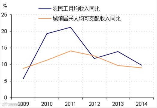 图表8 中国农民工与城镇居民收入增速 |