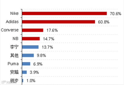 图表27 80后对运动品牌的喜好:北京 |