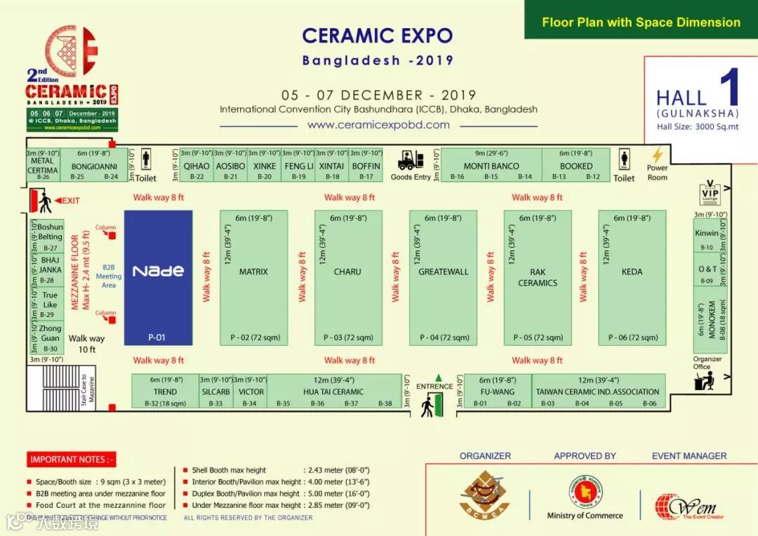 Ceramic Bangladesh 2019 will be held at International Convention City Bashundhara (ICCB) in Dhaka from 5 to 7 December. Nade will attend at hall 1, p-01.