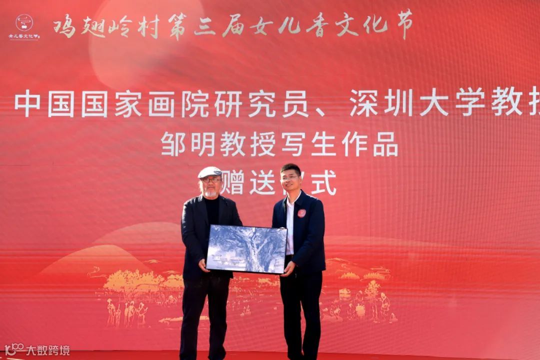 以书画写生、纂刻的形式展示鸡翅岭村是本届女儿香文化节的特色之一,开幕式上,中国国家画院研究员、深圳大学教授邹明等艺术家向鸡翅岭女儿香文化节捐赠作品。并提供70余幅写生作品、110余个纂刻作品在女儿香文化艺术节中进行展览。