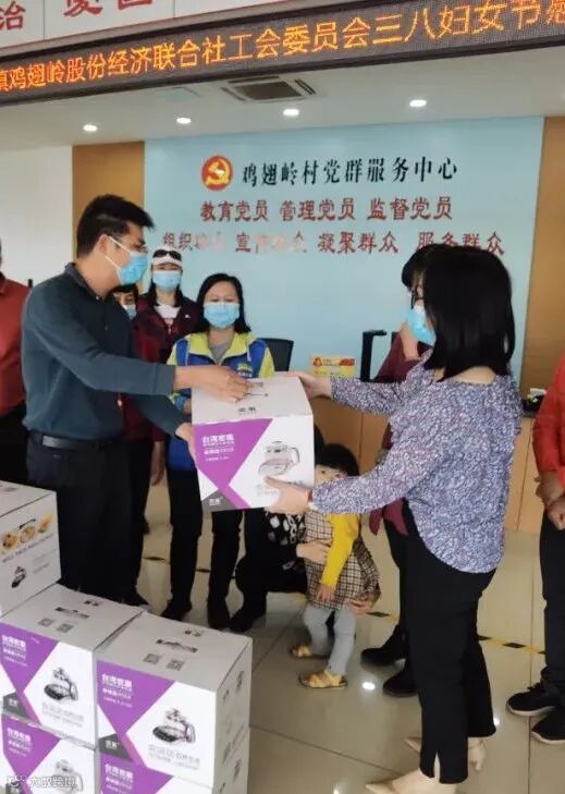 ,为鸡翅岭村委会女职工送上节日礼物和祝福。