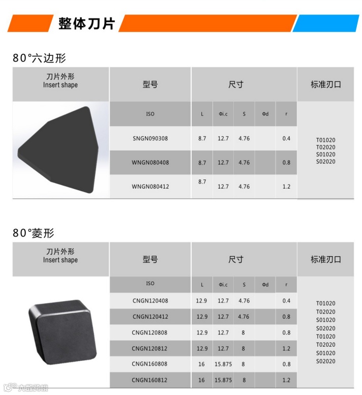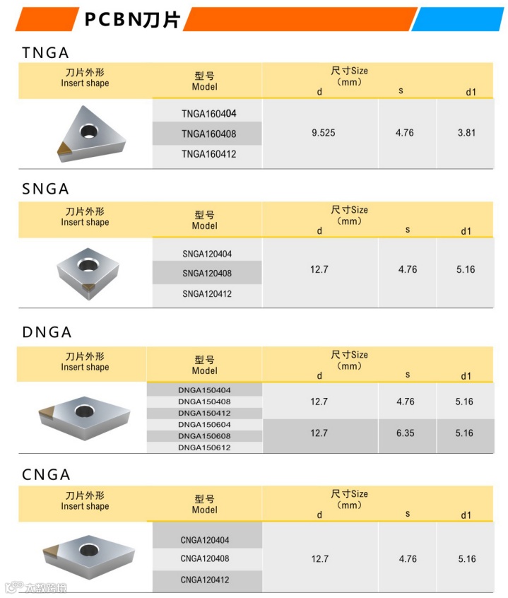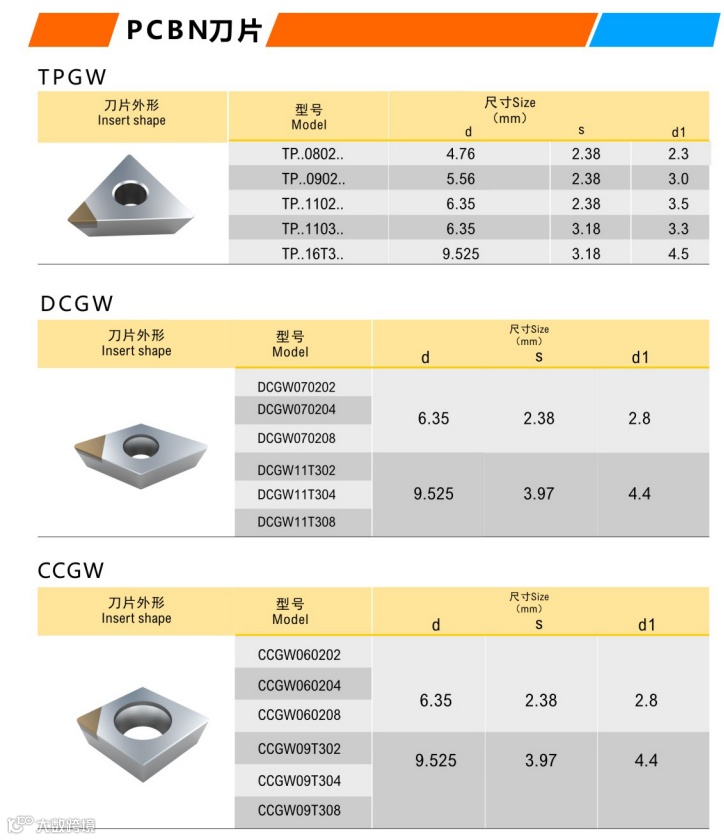 2、超硬CBN氮化硼刀片,加工高硬钢、冷硬钢等难加工材料性能卓异。