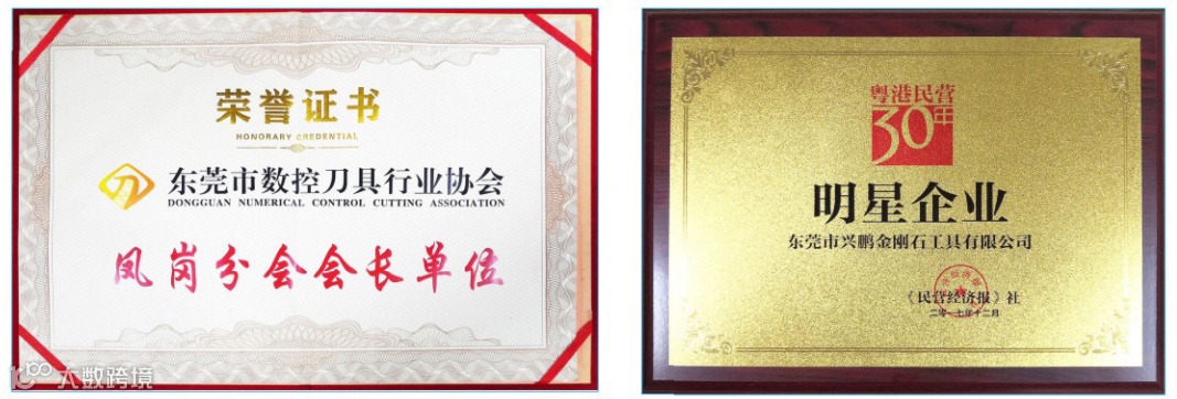 凭借在金刚石刀具行业对专业技术的深度钻研、超强技术实力、一贯积累的行业良好口碑,东莞市兴鹏金刚石工具有限公司多次荣膺明星企业、东莞刀协东莞凤岗分会会长单位、监事单位等荣誉称号。