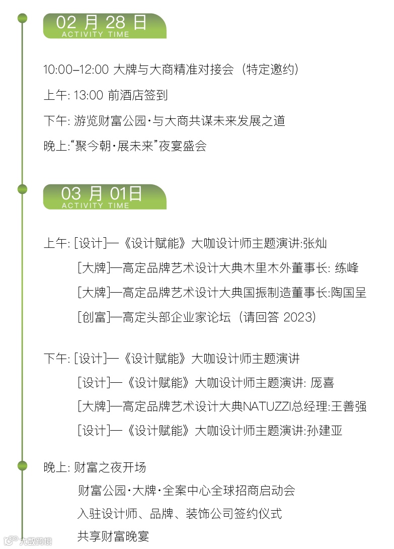 三年疫情全面开放、房产利好不断……当千载难逢的机遇邂逅发展后劲十足的的高端定制行业,面对崭新的2023将擦出怎样的火花?2023年2月28日、3月1日,浙江·丽水·财富公园,我们一起寻找答案!