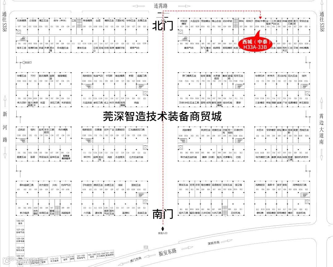 西城(中泰)铺面,从莞深智造商贸城北门处往连霄路方向走第八间门面即是。走靠振安东路的南门进入,沿主通道直进至H栋转角靠右一侧第八间门面即是。
