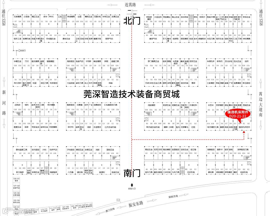 强劲机床附件铺面,从莞深智造商贸城一期南门主通道直进至B栋与D栋的通道中央靠D栋一侧位置即是。