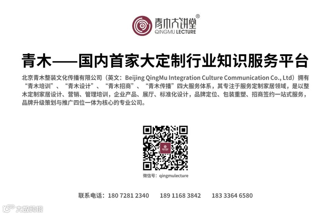 青木大讲堂多年深耕定制行业,创立于2015年的青木,旗下现有“青木培训”、“青木设计”、“青木传播”三大核心板块,致力于成为大定制产业的知识服务平台,基于学习社交、合作社交的深度人脉平台一直致力于为行业发展提供共生、共荣的平台。