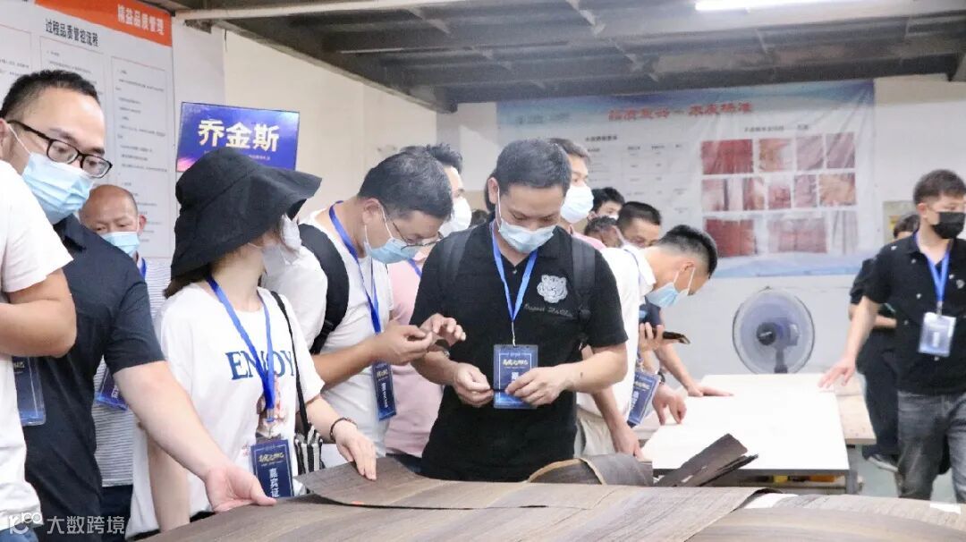 在营销中心主要负责人的带领下,同行学员们走进乔金斯智造中心,通过对生产线的零距离观摩体验感受品牌的实力。从生产细节看产品品质,“实力派”乔金斯源于这里。参观过程中,学员们或驻足咨询,或拍照留样,看到品相出众的木皮不禁伸手触摸感受,称赞连连。即将亮相于7月广州建博会的“四叶草”系列部分样品板材,吸引了大家的目光,大家纷纷驻足,一睹芳容。