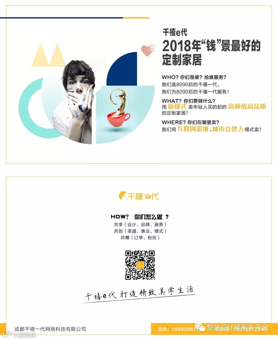 千禧e代是全新的互联网定制家居整体服务商,千禧e代整合设计、供应链和渠道资源,与全国加盟工厂,共同为年轻的消费者提供高颜值高品质极致性价比的定制家居。