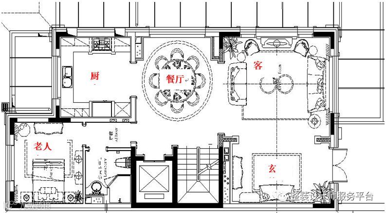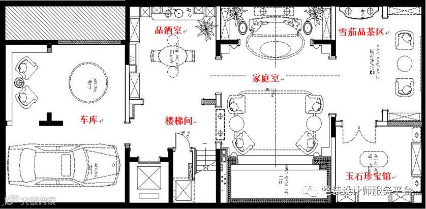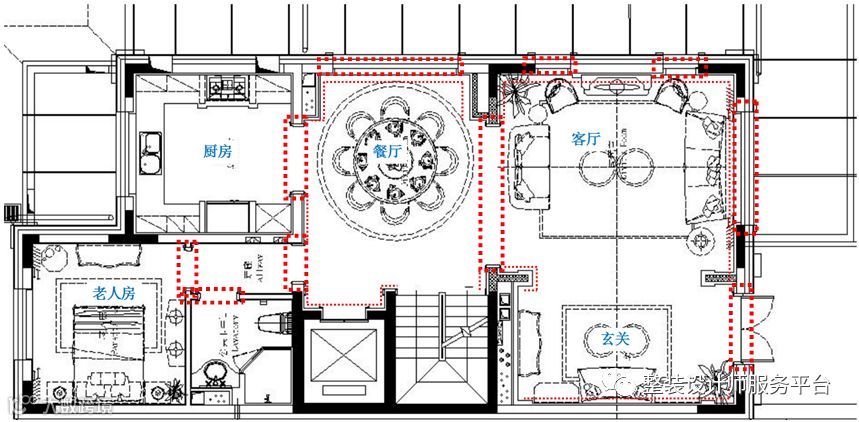 第二步:与主创设计沟通,对木作区域进行标注,对与木作搭接的其他材质进行标注