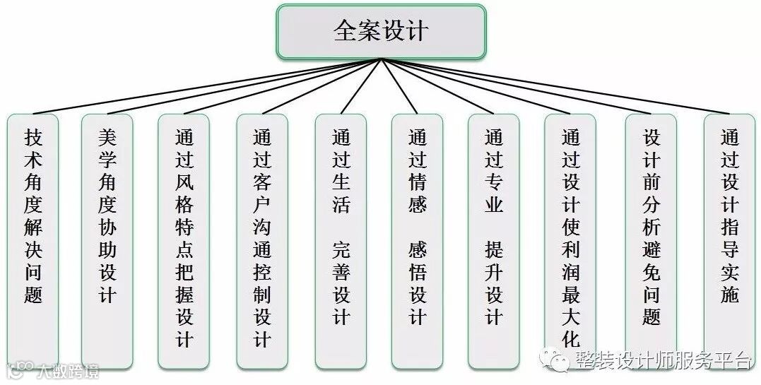 在设计方案前,将与设计方案有关的本厂的技术数据、相关定制产品的技术数据、与所设计的产品相关联的各种电器用品和活动家具等产品的数据,通过多方面分析,并确认其具有可执行性,然后再结合客户情感需求、家庭结构、兴趣爱好、环境特点、客户世界观、生活习惯以及生产数据等等,从而进行完全设计的一种设计方法。