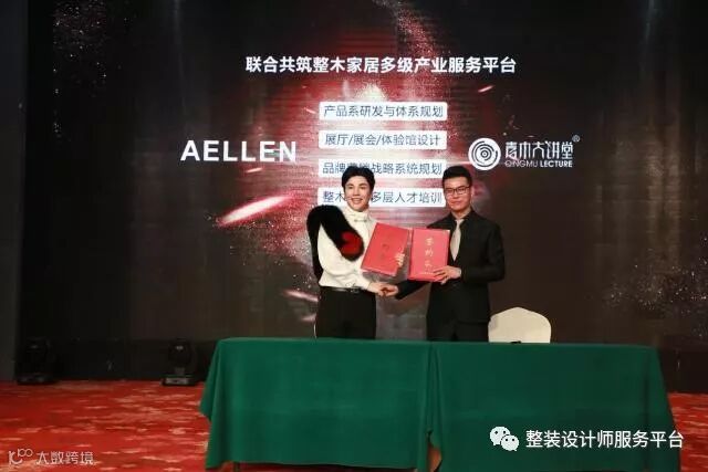 而后,国内顶尖设计师Aellen先生为我们解读当下最主流的客户群体“千禧一代”的产品及品牌营销发展之路。随后,北京青木整装文化传播有限公司总经理郭伟与Aellen上台,共同开启“千禧一代”新篇章,签下了战略合作的盟约,未来双方将在产品系研发与体系规划、展厅/展会/体验馆设计、品牌营销战略系统规划、整木定制多层人才培训等领域进行深度合作。