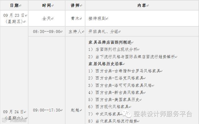 教学目标:通过对家具陈列行业现状与流行趋势的分析,确定企业设计定位;通过对家具风格历史背景的学习,掌握不同时期的家具特点及标志性家具样式、家具设计师、设计元素及符号;运用家居陈设的一般原则,在不同空间的功能特点、不同个性需求下合理布置家具,营造出精准的整体家居生活方式;通过风水装饰学,提升空间的价值,增加谈判的筹码;通过前端设计管控系统建立完善的管理体系!