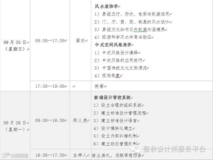 注:每天为8个课时,遇特殊情况个别课程及师资可能会做调整,如有变动将及时在微信群内通知。