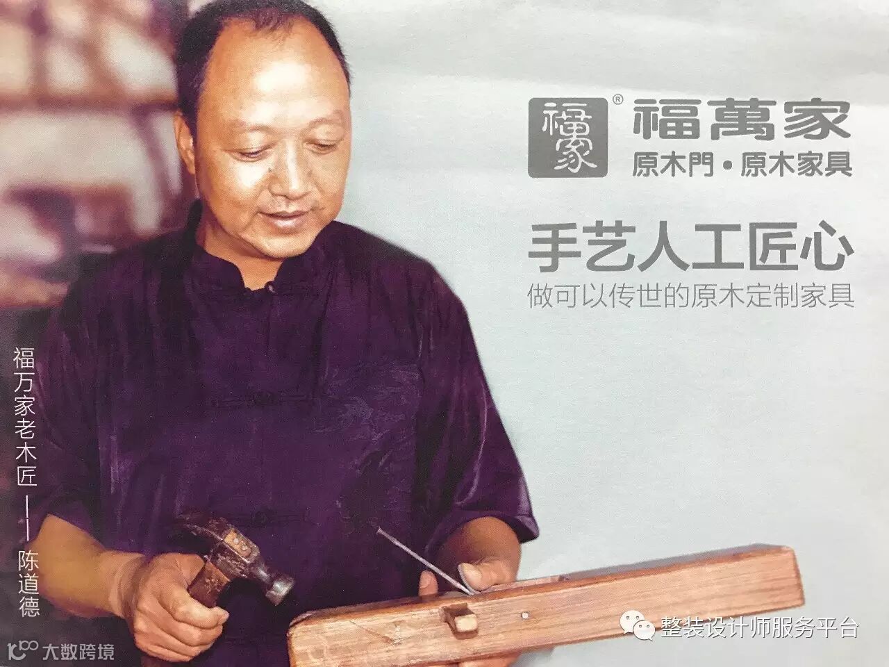2012年10月福万家创始人老木匠陈道德成立了“陈道德木艺工作室”,进一步强化了福万家木艺技术的核心优势,通过产品传承传统木艺文化。2015年福万家公司——陈道德木匠团队深情推出“德匠木艺”品牌,以一个手艺人的工匠心,做可以传世的高端定制家具。
