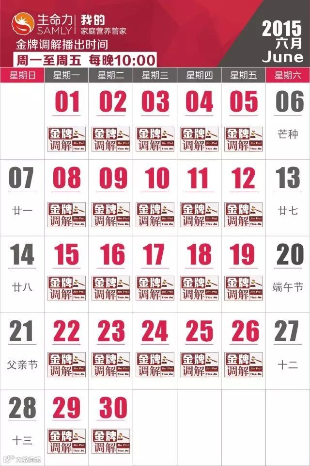 有问题,来调解!来调解,没问题!作为常态节目收视王牌,2014-2015年度,生命力全年广告合作栏目——生命力《金牌调解》收视全年有62天排名同时段前三,全年累计参与及收看节目的家庭达3.46亿,在网络上传播点击量达6900万次。作为一个广受关注的节目,生命力《金牌调解》成功打造了情与理的契合点。