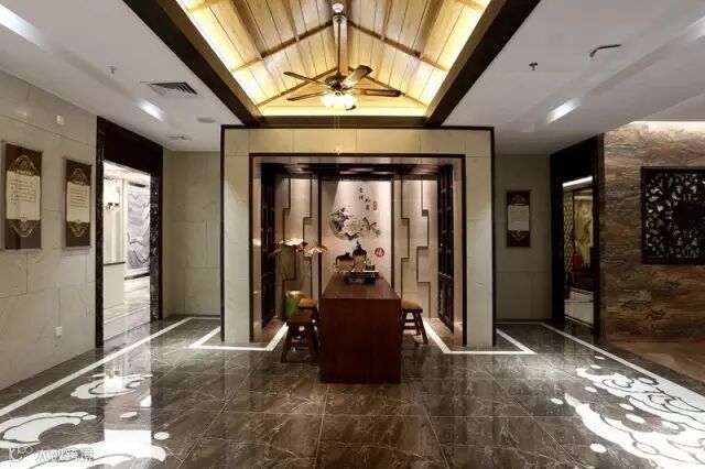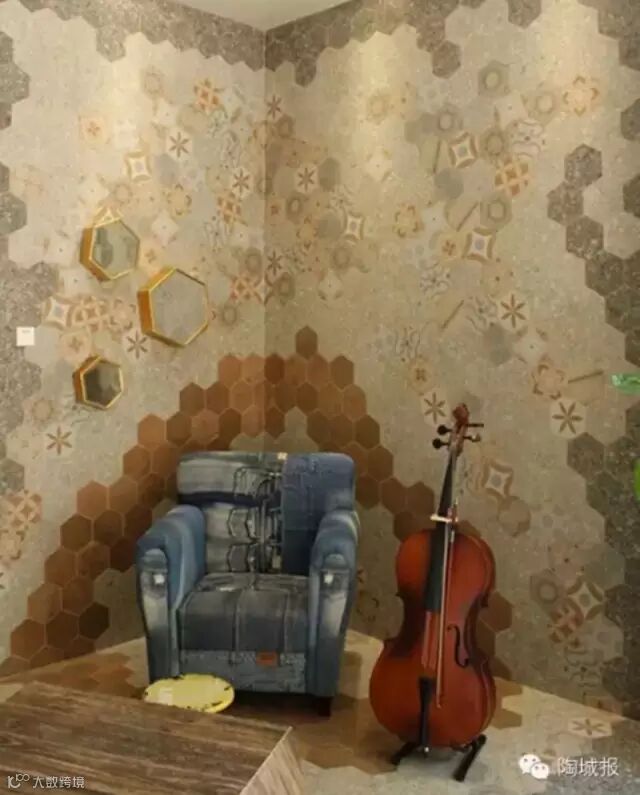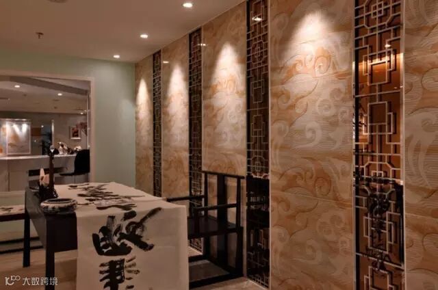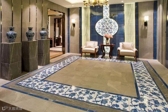 在仿古砖的应用上,金狮王充分发挥其质感细腻,内涵丰富的特点,尤其是中国元素的运用,将青花瓷与泰山石完美结合,体现了中国文化的丰富内涵。