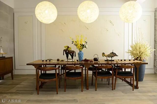 QD印象馆,从线条到材质,从色彩到空间布局,褪去传统中式的古旧与沉闷,融入现代时尚的气息,在古典风韵中,别具现代的大气雅致。古色古香的中式趟门,素雅精美的吊灯,甚至是古韵犹存的屏风,映画石的纹理带你走进一段流动的光华,营诗意,造文气。
