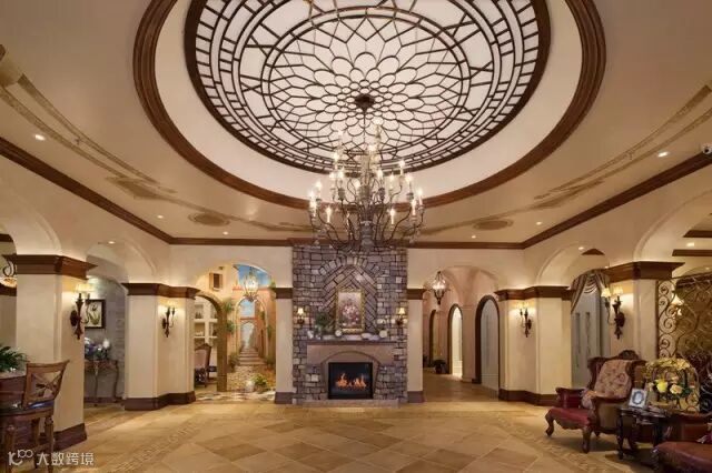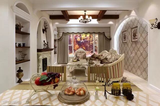 卡布里展厅是以清爽少见的纯欧式手法表现,蓝白色调的结合非常突出和醒目,西式罗马柱、镶着彩色玻璃的长窗,让整个玉石公馆线条简洁却又宏伟大气。