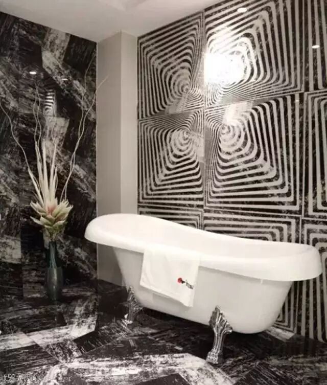 奢瓷壹号馆大量运用奢瓷产品晶聚合系列,使整体呈现一种奢华的感觉。设计运用多曲线、复杂的水刀图案,包括产品图案花色的互补,颜色的搭配,装饰度的把控等方面,其设计思路都完整地展现出来。