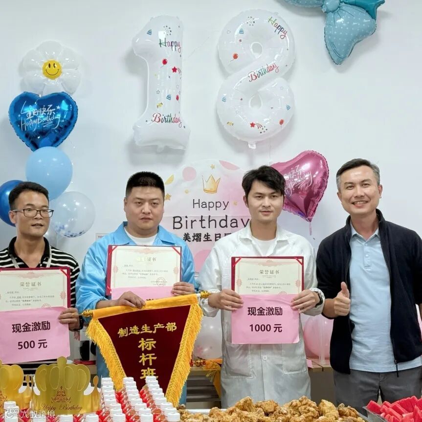 "亲爱的寿星们,你们是车间最温暖的阳光。当你们为梦想拼搏时,我们愿做你们身后的港湾;当你们收获成功时,我们愿为你们鼓掌欢呼。愿新的一岁,你们眼中有星辰,心中有山海,脚下有坦途,未来皆可期!"