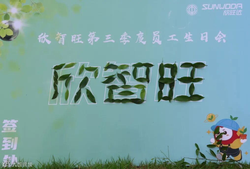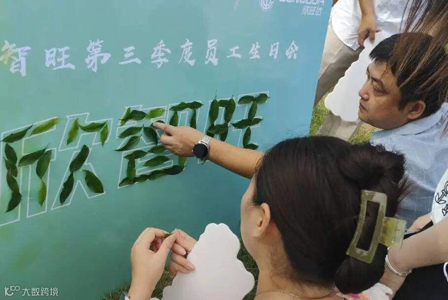 寿星们用树叶拼出"欣智旺"