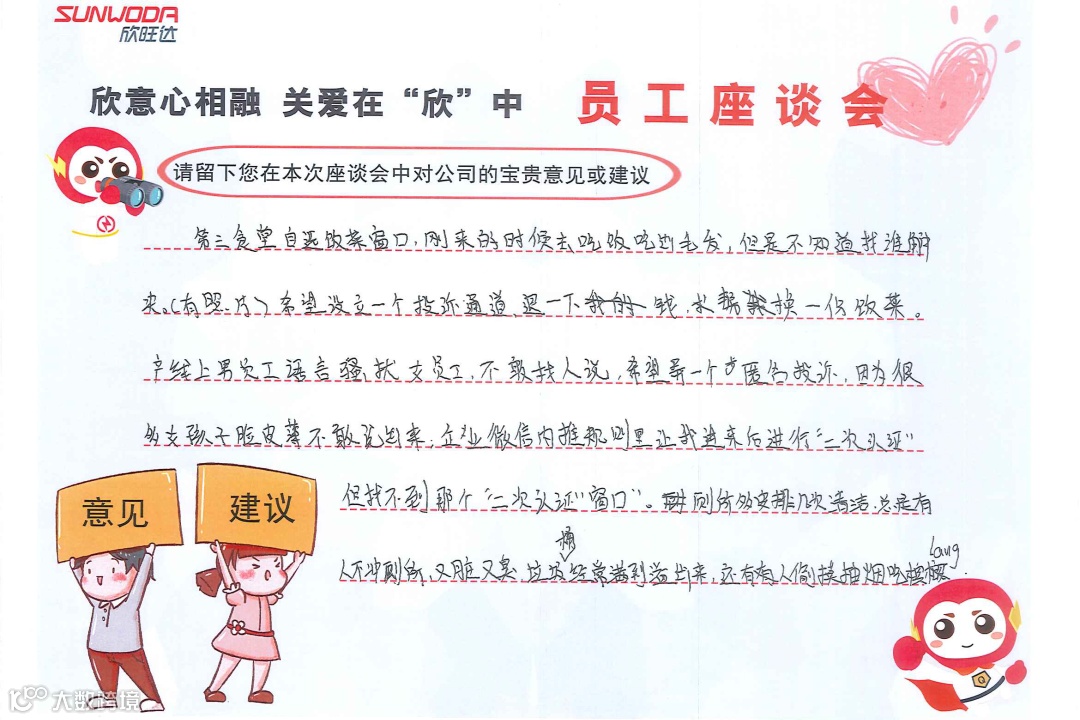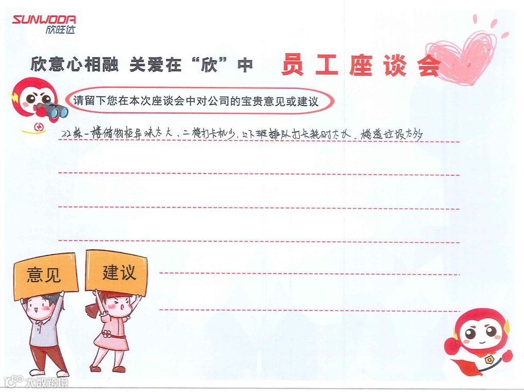 为更好的了解大家需求,提升欣家人们目前在工作,生活中的难点和诉求。欣智旺工会协同人力资源部开展了“欣意心相融 关爱在欣中”新员工座谈会